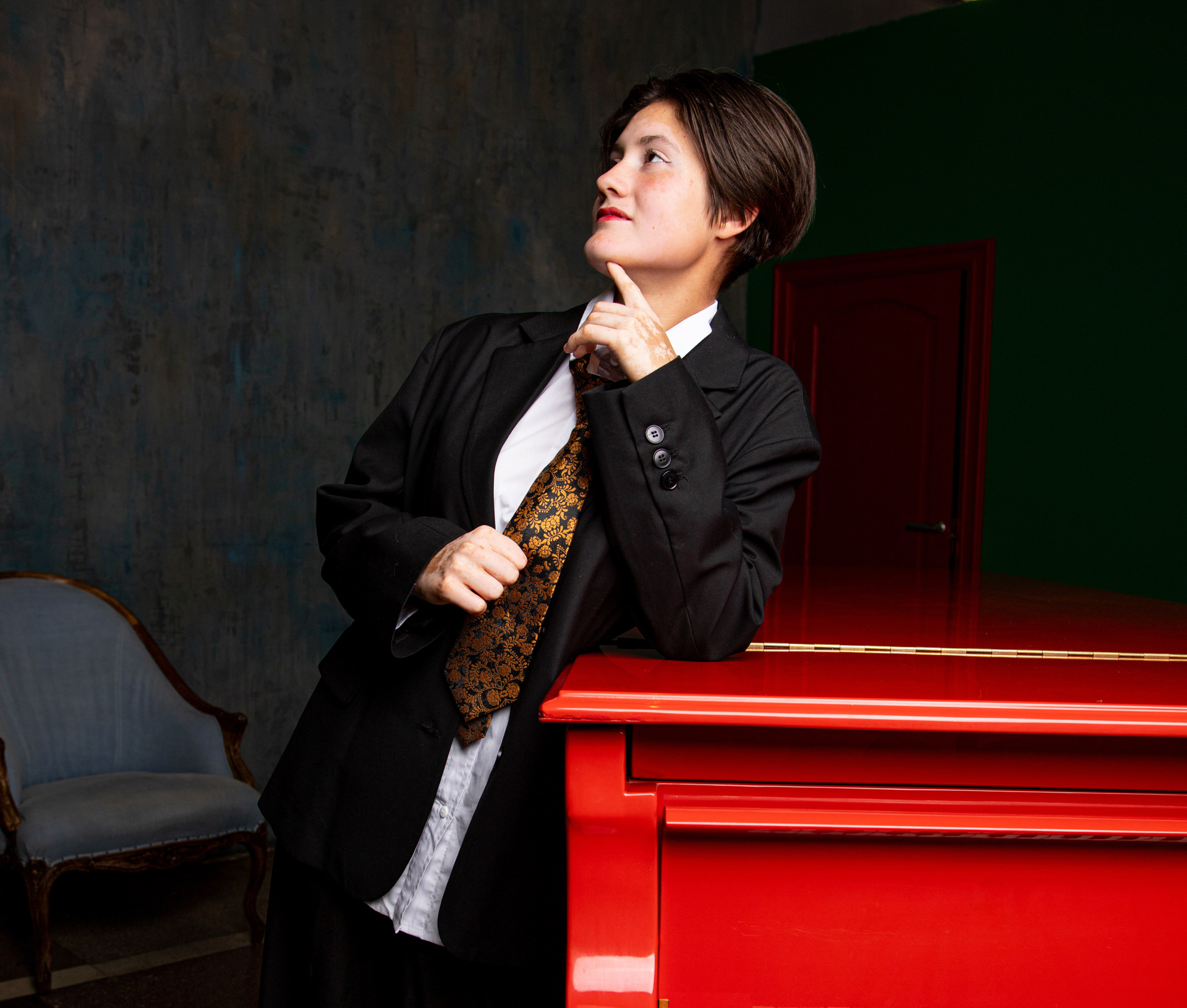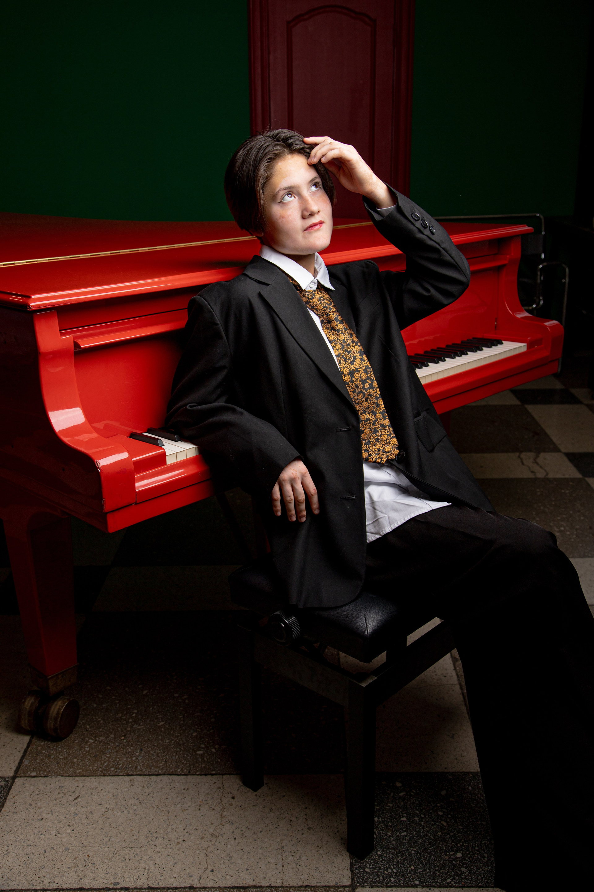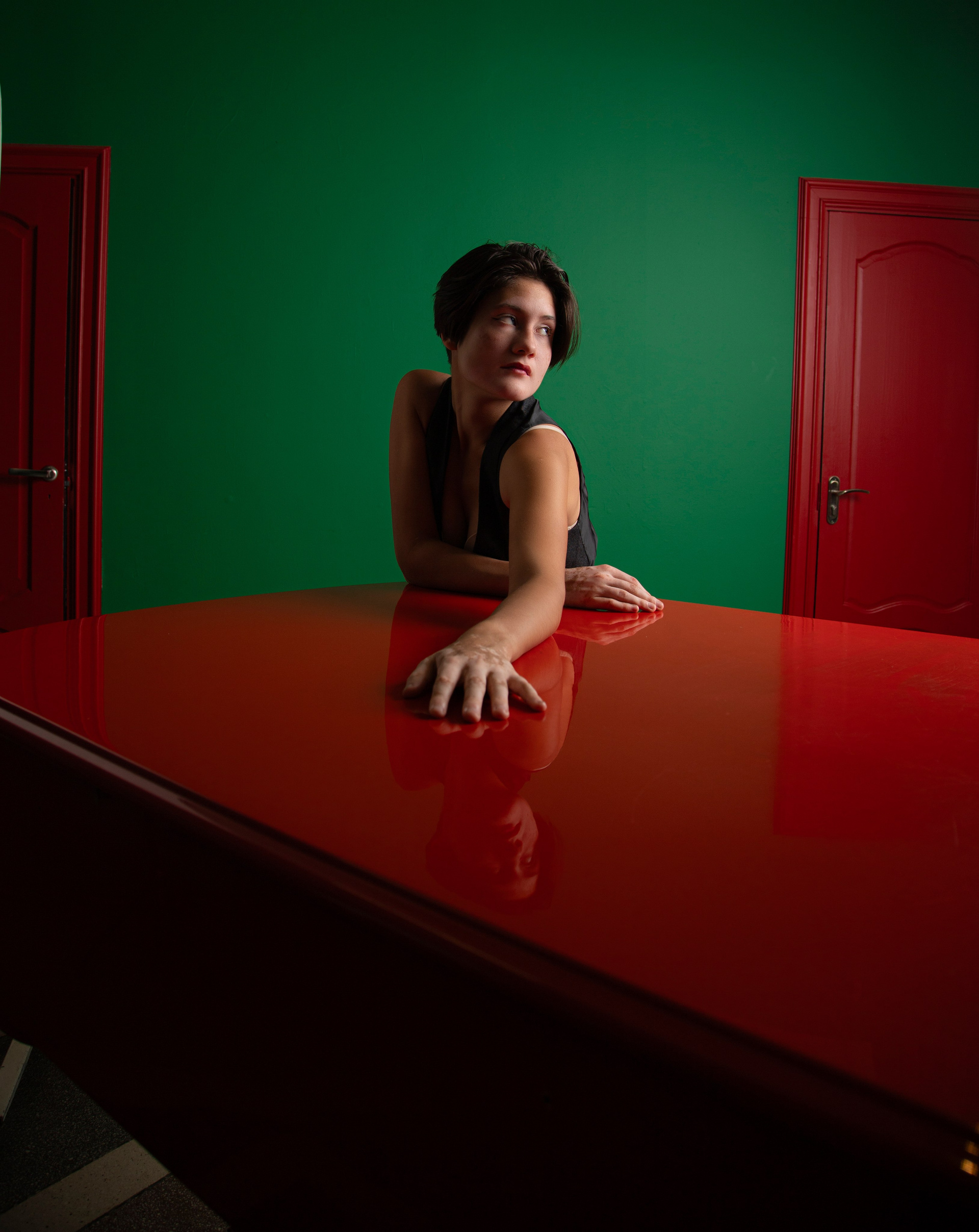 Съемка с красным роялем