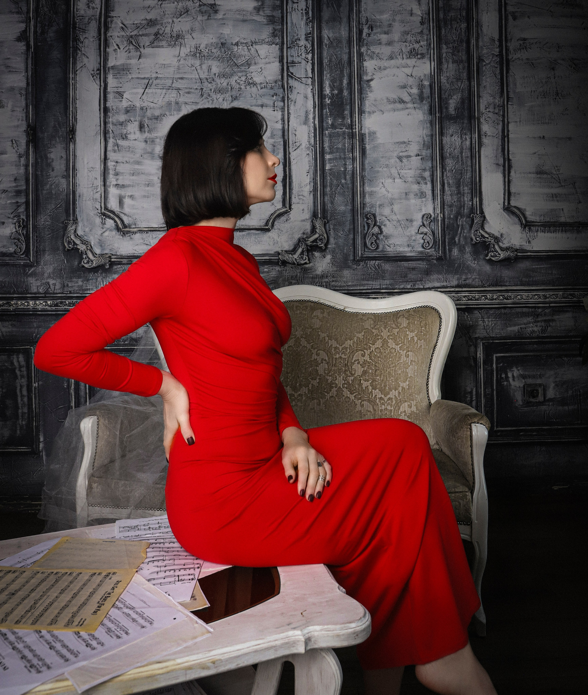 Съемка с красным роялем